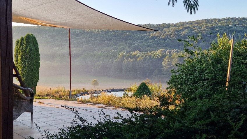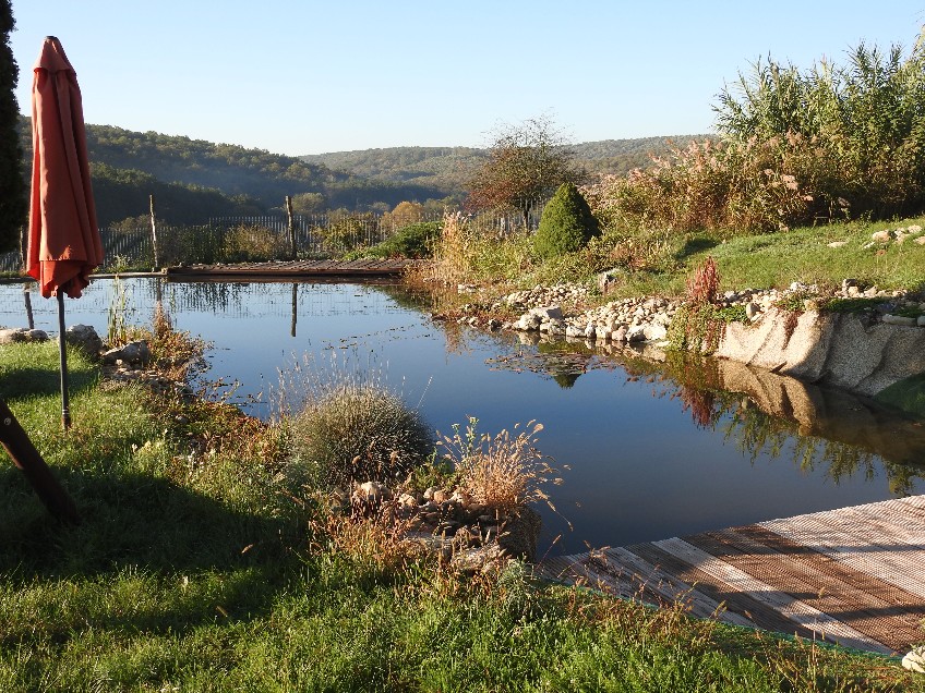 A 17 000 m2-es területen az épületek mellet bőven maradt hely egy nagy- és egy pici kerti tónak, gyümölcsösnek, veteményes kertnek és szép, árnyat adó fás ligetnek is.